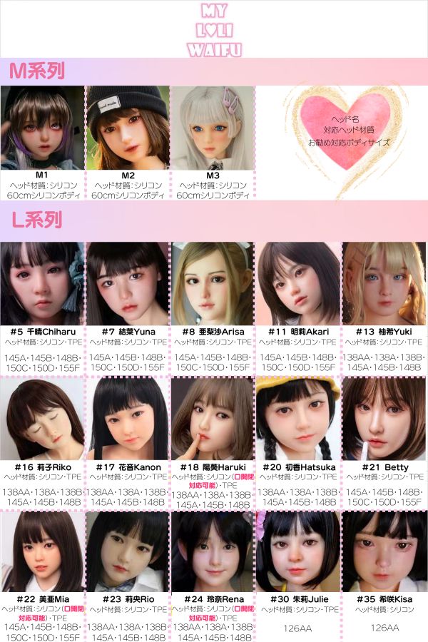 ☆マークのヘッドのみROS付です。(口開閉機能+舌付きの軟性シリコン製)