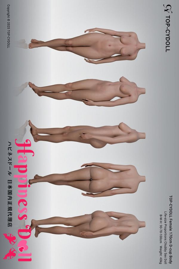 ①TOP-CYDOLLは現在、157cm、167cm、168cm、170cm、176cmの5種類のボディを展開しています。主にDカップ〜Fカップのバストサイズで設計されており、魅力的な高身長&グラマラスな曲線美が特徴です。