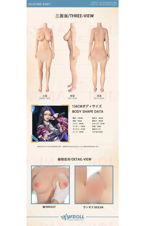 | 156cm Iカップ | 32cm | 33kg | 89cm | 59cm | 57cm | 94cm | 22cm | 選択可能 | 選択可能 | 硬質ヘッドは穴無し、口開閉機能付きの場合11cm | 153x40x32cm |